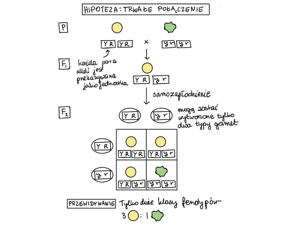 Ponieważ cechy dominujące maskują cechy recesywne (zakładając brak epistazy), istnieje dziewięć kombinacji, które mają fenotyp okrągły żółty, trzy, które są okrągłe zielone, trzy, które są pomarszczone żółte, i jedna, która jest pomarszczona zielona. Stosunek 9:3:3:1 jest oczekiwanym wynikiem podczas krzyżowania dwóch podwójnie heterozygotycznych rodziców z niesprzężonymi genami. Każdy inny stosunek wskazuje, że zaszło coś innego (takiego jak letalne allele, epistaza, sprzężone geny itp.).