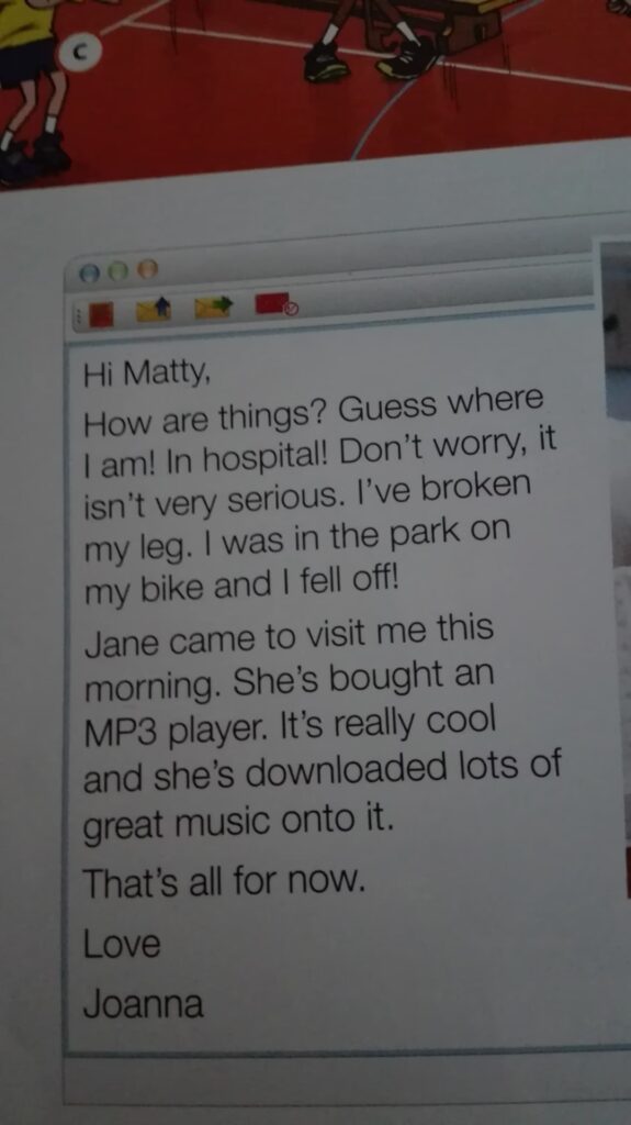1. Wstęp: To zazwyczaj krótki akapit, często już częściowo napisany w poleceniu. Możesz do niego dodać jedno zdanie od siebie, np. przeprosiny za długie milczenie (I’m sorry I haven’t written for such a long time but I’ve been very busy recently.) lub zapytanie o samopoczucie adresata (I hope you’re doing great. You have to tell me how your schoolmates and family are!). Wstęp powinien być zwięzły i wprowadzać w temat.