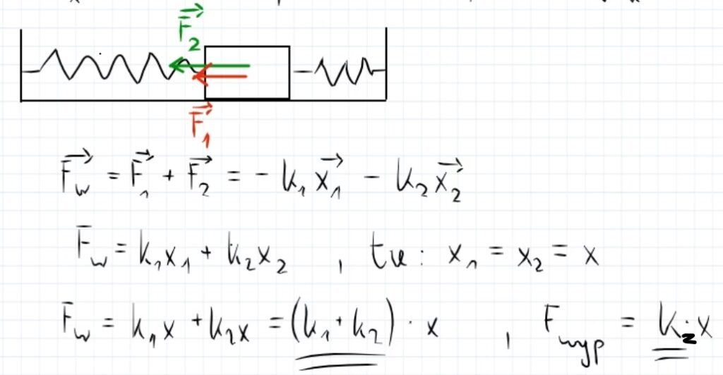 Ponieważ Fg = m · g (gdzie m to masa ciężarka, a g to przyspieszenie ziemskie) i Fs = k · Δl (gdzie Δl to wydłużenie sprężyny), otrzymujemy: