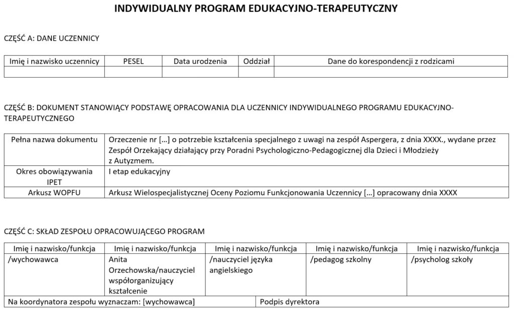 Zgodnie z obowiązującymi przepisami, IPET musi zawierać osiem kluczowych elementów, które szczegółowo opisują zakres i formy wsparcia dla ucznia: