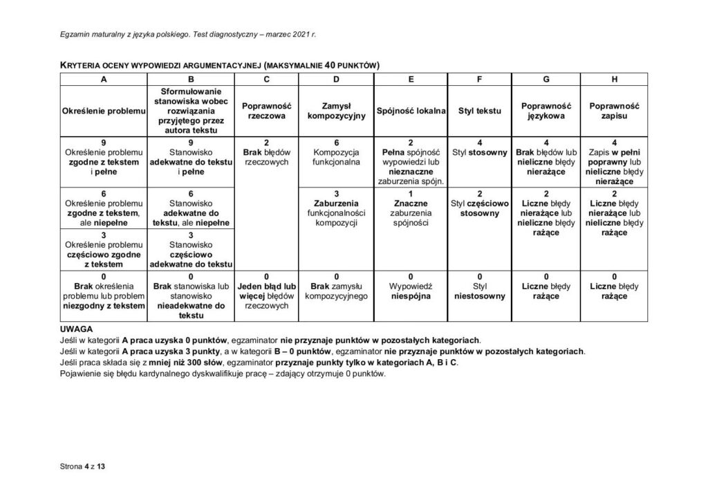 | 0% - 39% | Niedostateczny |