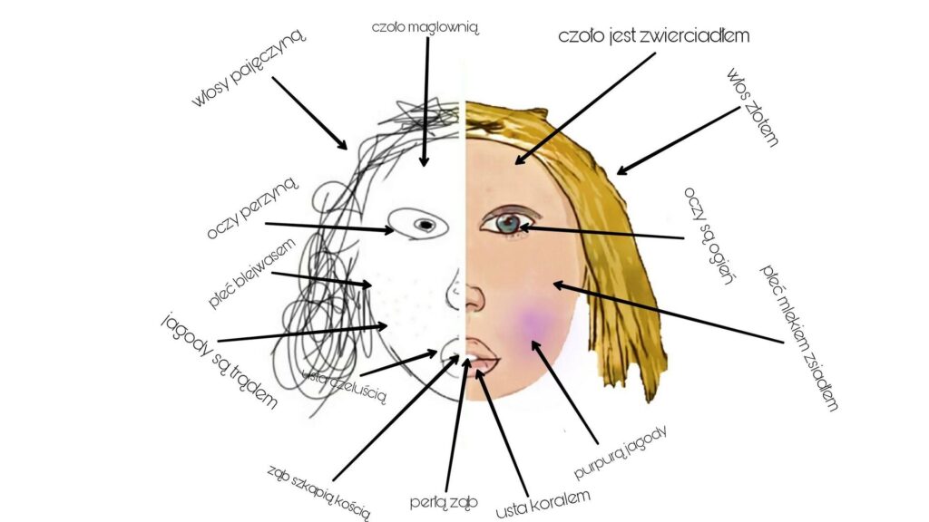 | Konceptyzm | Zaskakujący, oryginalny pomysł poetycki, często oparty na paradoksie lub antytezie. | Zestawienie idealnego i odrażającego obrazu kobiety w „Niestatku”. |