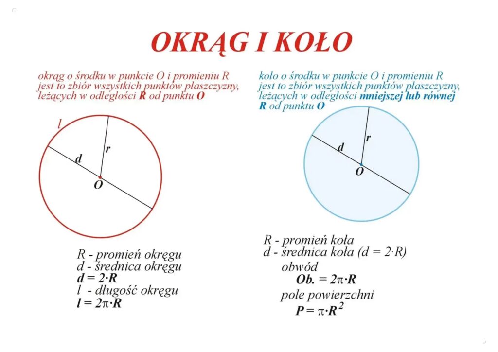 Zarówno koło, jak i okrąg posiadają kilka wspólnych, kluczowych elementów, które są niezbędne do ich opisu i obliczeń: