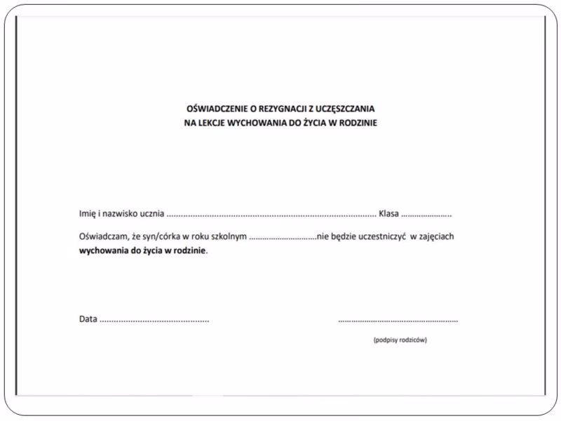Wzór pisma rezygnacyjnego z zajęć WDŻ