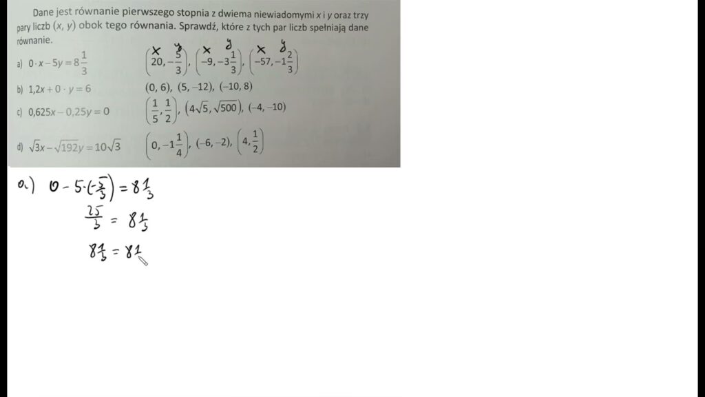 Znalezienie rozwiązania takiego równania polega na odnalezieniu pary liczb (x, y), które po podstawieniu do równania sprawią, że lewa strona będzie równa prawej. Takich par może być nieskończenie wiele, co jest jedną z fascynujących cech równań liniowych.