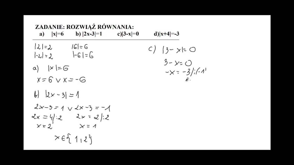 - Zero rozwiązań: Gdy wartość bezwzględna jest równa liczbie ujemnej (np. |x| = -3).