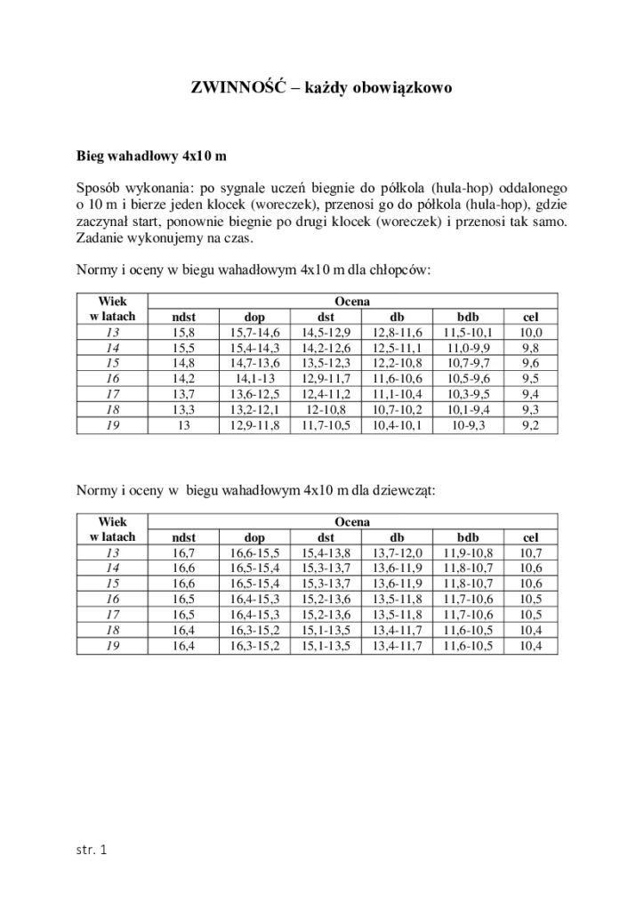 - Płeć: Chłopcy i dziewczęta w tym wieku rozwijają się fizycznie w różnym tempie, co wpływa na ich siłę i szybkość. Zazwyczaj chłopcy osiągają nieco lepsze wyniki.