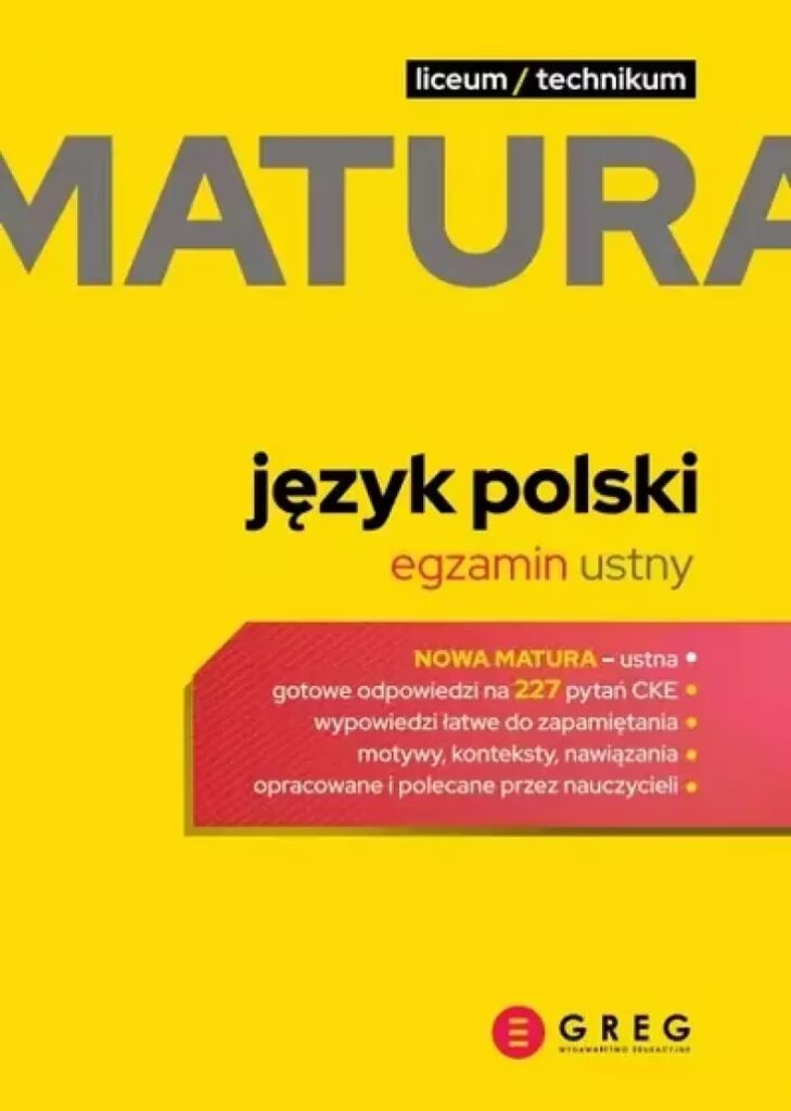 - Test historycznoliteracki: 15 punktów (sprawdza znajomość lektur obowiązkowych i kontekstów historycznoliterackich).