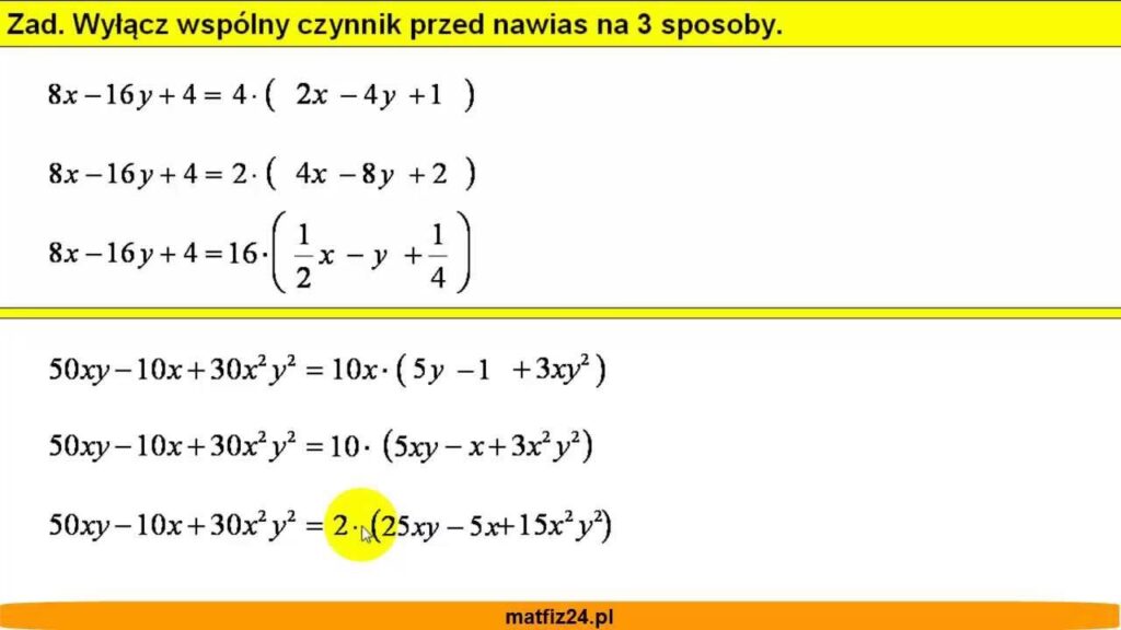 Wyłączanie Czynników Przed Nawias w Równaniach Różnego Stopnia